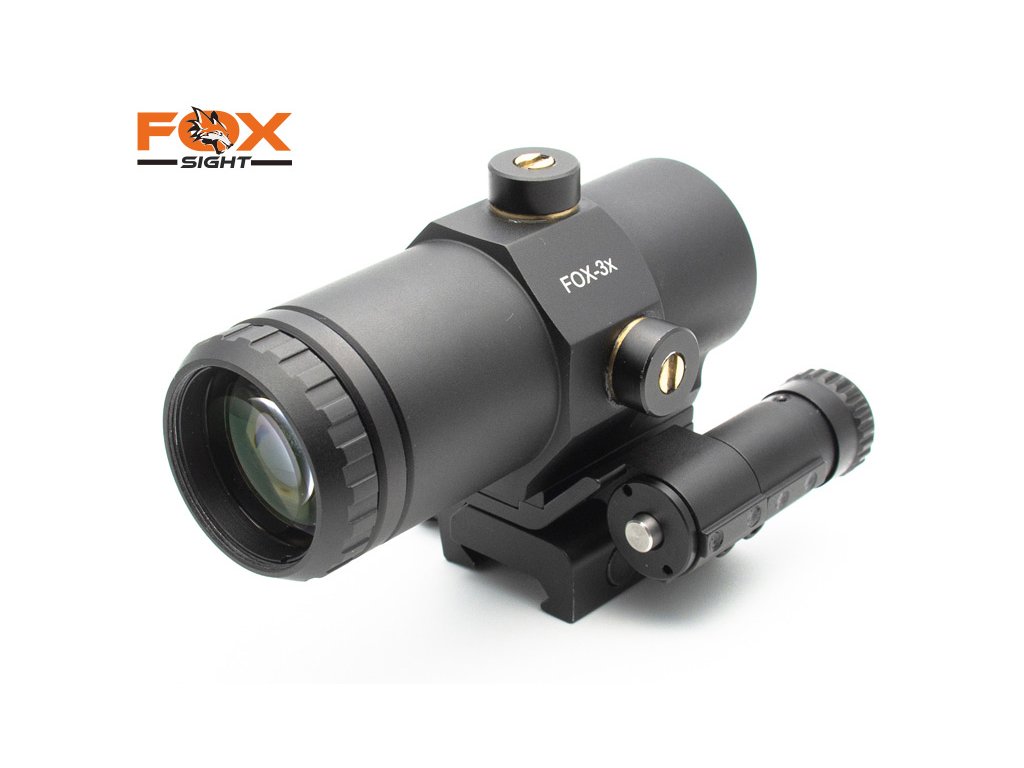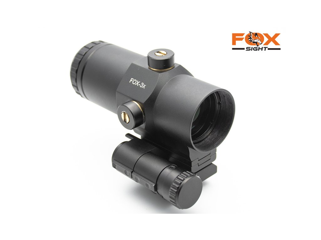 Zväčšovací modul FOX-3X českej značky FOXsight s optimálnym pomerom zväčšenia 3x v kombinácii s výklopnou montážou umožňuje veľmi presnú streľbu cez kolimátor aj na dlhšie vzdialenosti. Zväčšovací modul je možné počas sekundy vďaka robustnej a pevnej výklopnej montáži predsadiť pred kolimátor, alebo ho odkloniť a strieľať tak iba cez kolimátor.